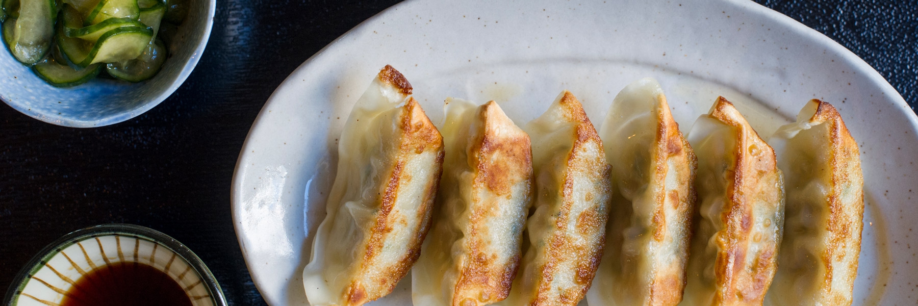 hausgemachter Gyoza-Sauce serviert mit Reis und Miso Suppe